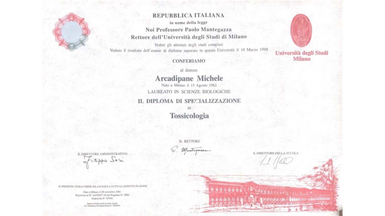 – specializzazione in Tossicologia (Università degli Studi di Milano. Facoltà di Farmacia a.a. 1998-99)