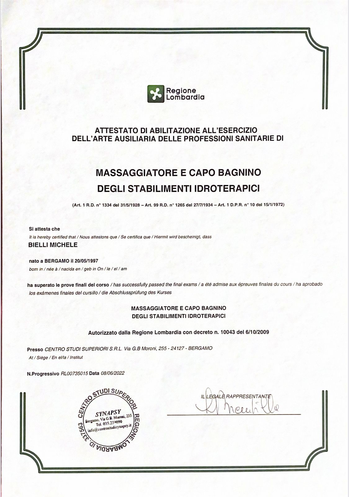 Mi chiamo Michele Bielli, sono Massoterapista e Osteopata.