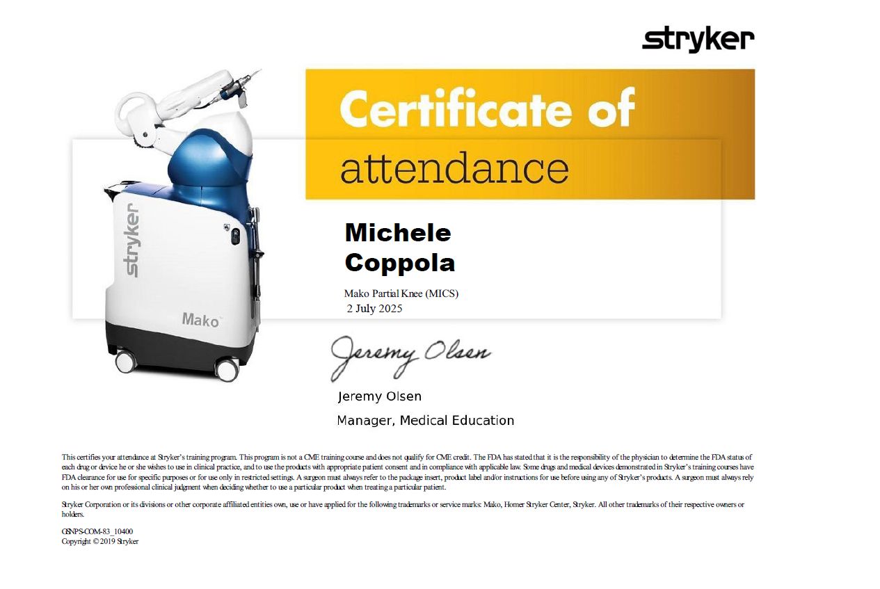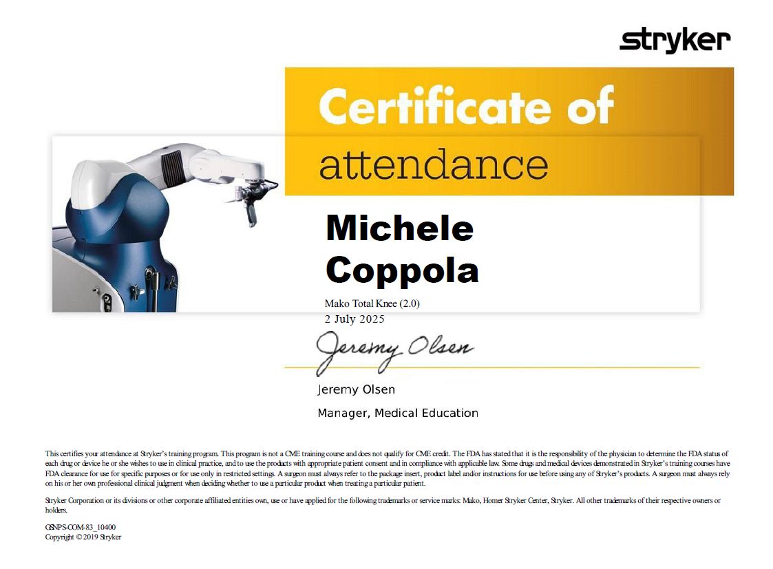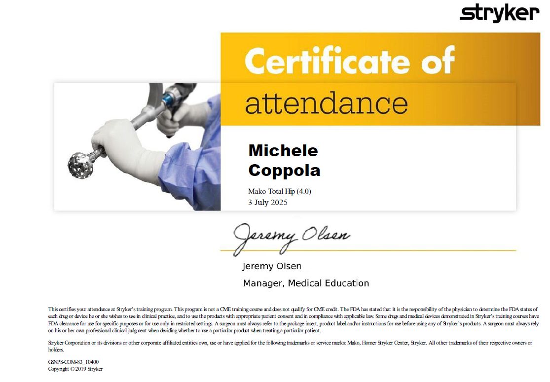 una Fellowship di un anno presso ICAR (ISTITUTO PER ARTROPROTESI COMPLESSE E REVISIONI) di Firenze con il dott. Andrea Baldini.