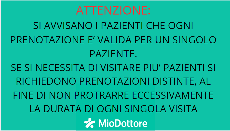 - Per la richiesta di visite ed esami si richiede la presenza in ambulatorio per appuntamento