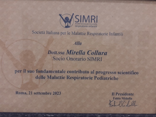 Affiliata alla Società Italiana di Pediatria,alla Società Italiana di Malattie Respiratorie Infantili di cui sono Socio Onorario dal 2023,alla Società di Allergologia Pediatrica e alla Società Italiana Fibrosi Cistica di cui sono stata dal 2011 al 2013 membro del Consiglio Direttivo e coordinatrice della Commissione Trapianti.
