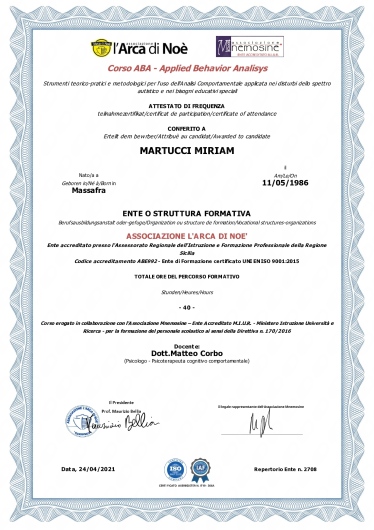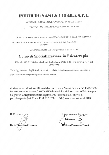 Iscritta all'albo A degli psicologi della Regione Puglia e all'albo degli Psicoterapeuti della Regione Puglia.