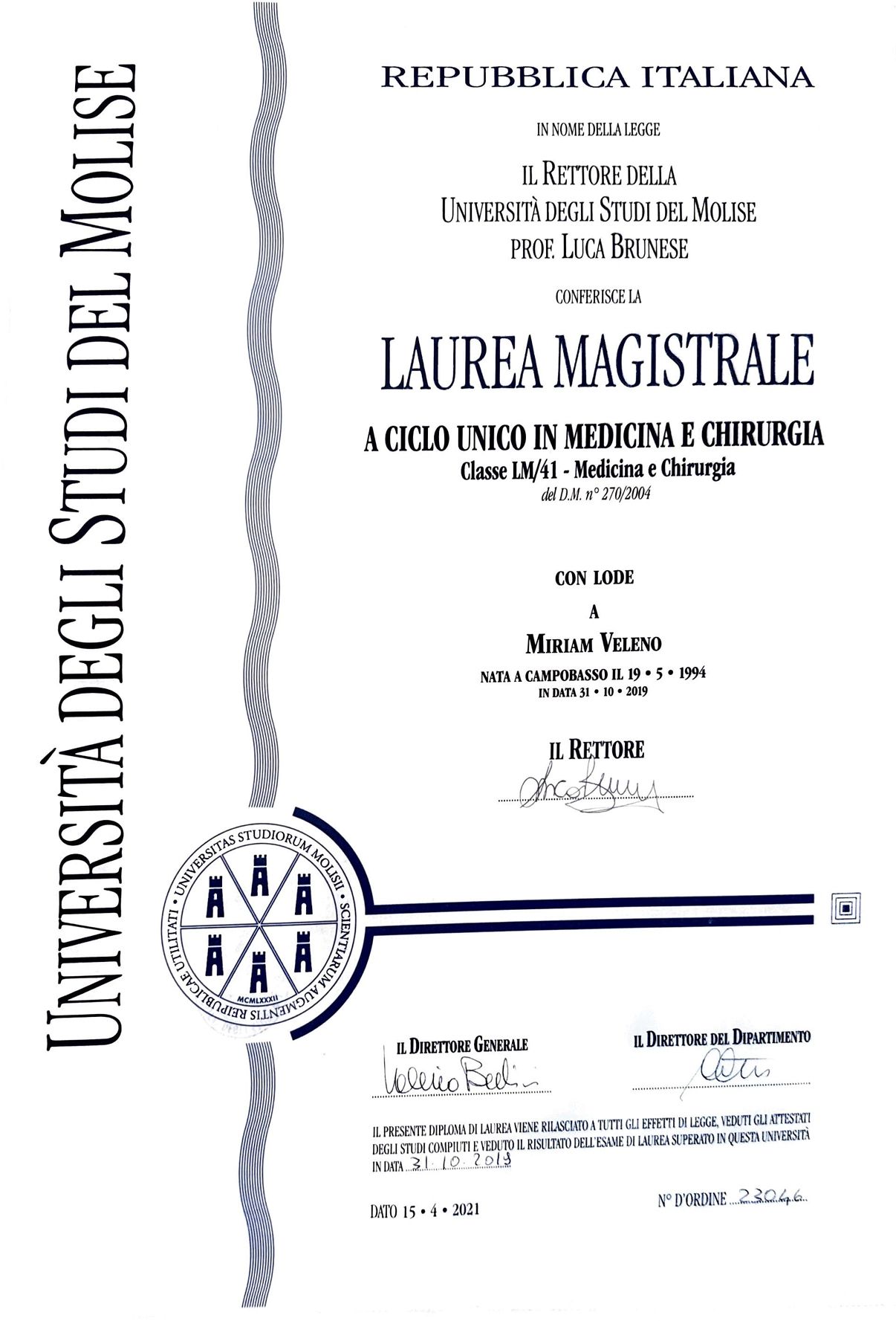 Attualmente esercito la mia professione presso l'Ospedale Cardarelli di Campobasso. Credo fermamente che il rapporto medico-paziente debba basarsi non solo su competenza e professionalità, ma soprattutto sulla fiducia reciproca. Solo attraverso una comunicazione aperta e trasparente è possibile raggiungere i migliori risultati terapeutici, promuovendo il benessere e la qualità della vita del paziente.