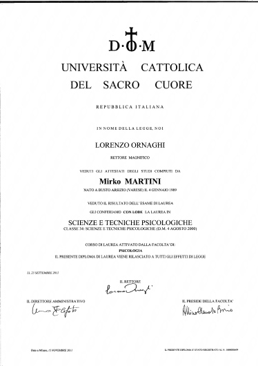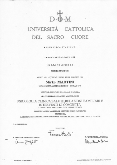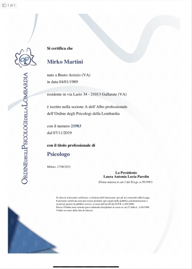 Psicologo clinico con esperienza di 14 anni nei contesti educativi e Psicoterapeuta in formazione presso iCleS -sede di Milano, ad orientamento psicoanalitico lacaniano. Laureato magistrale all'Università Cattolica del Sacro Cuore di Milano, ho conseguito l'abilitazione come Psicologo n. 21983 e sono attualmente iscritto all'Ordine degli Psicologi della Lombardia. Offro la mia disponibilità nella consultazione sia online che presso il mio Studio.