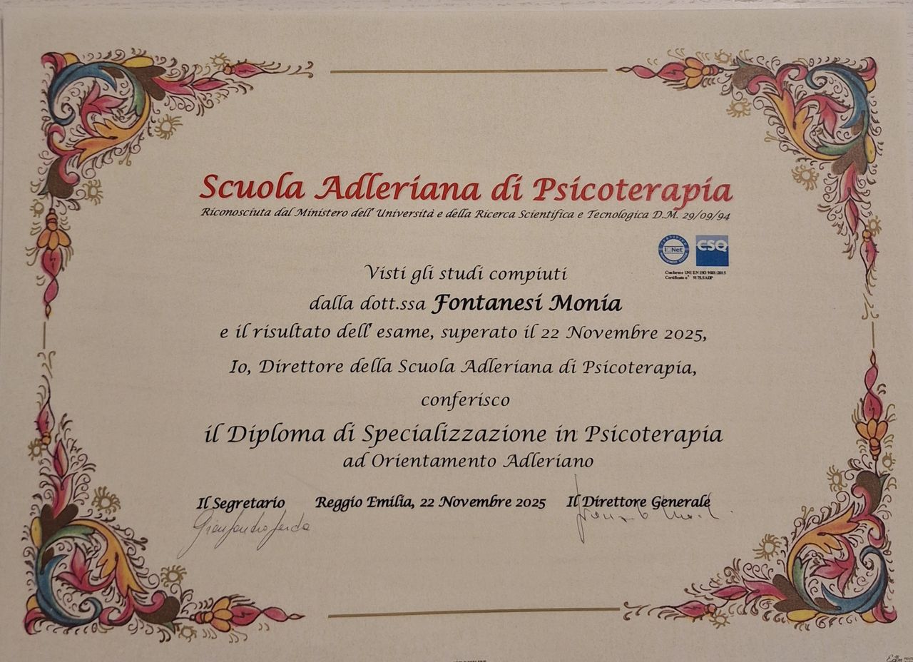 Mi sento di consigliare la Dott.ssa Fontanesi per l’aiuto che mi sta dando e per il suo atteggiamento gentile che mi fa sentire a mio agio