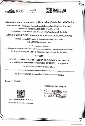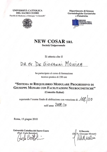 Sono inoltre specializzata in Rieducazione posturale (metodo Méziéres).