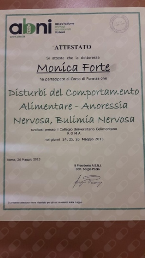 A partire dal 2016 ho iniziato una collaborazione con il Dipartimento U.O.S.D. Disturbi del Comportamento Alimentare presso il Poliambulatorio S. Maria della Pietà – Asl Roma 1