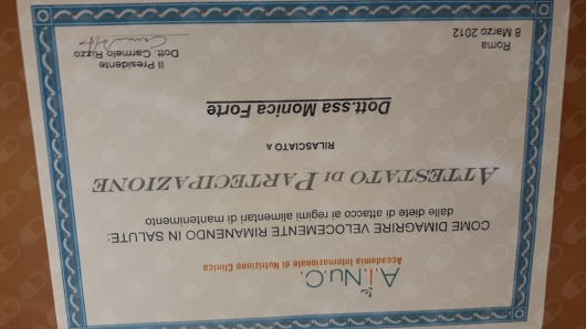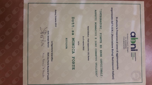 Mi sono laureata in Scienze Biologiche presso l’università La Sapienza di Roma e specializzata in Scienza dell’Alimentazione presso l’Università “Tor Vergata” di Roma e ho continuato a specializzarmi come ricercatrice presso l'ex I.N.R.A.N. (Istituto Nazionale di Ricerca per gli Alimenti e la Nutrizione) ora ente CREA alimenti e nutrizione.