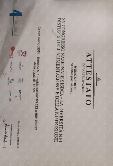 Da ottobre 2022 socio SISDCA ( Società italiana per lo studio dei Disturbi del Comportamento Alimentare).