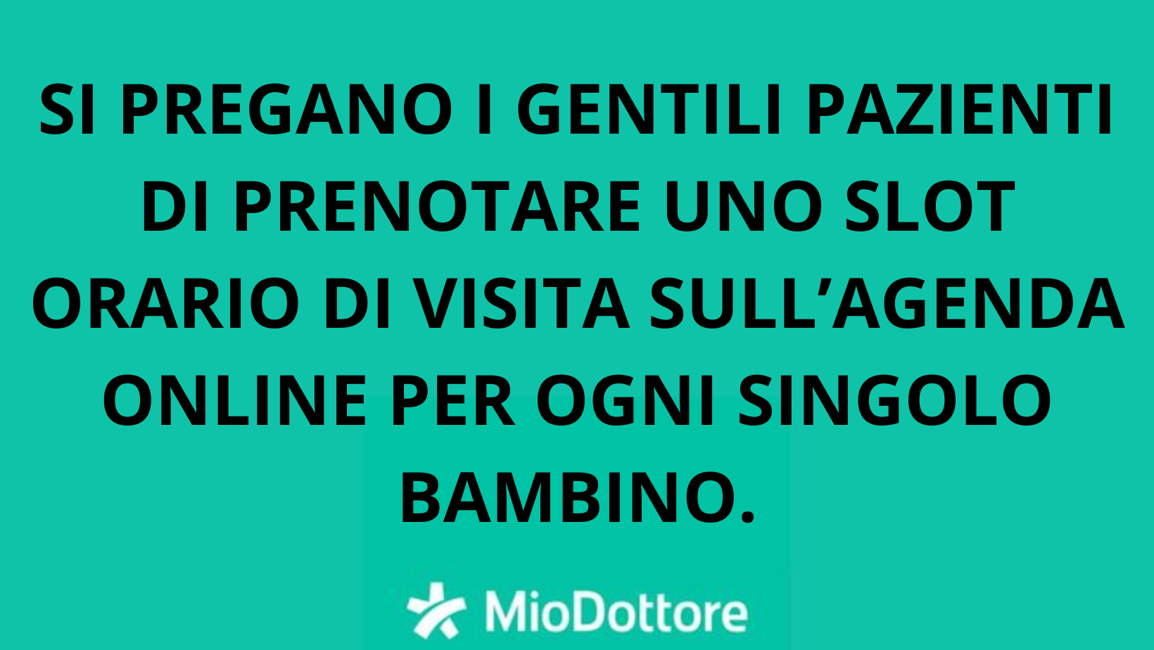 - PER LE VISITE DI CARATTERE GENERALE, NON PER PATOLOGIA ACUTA (CONTROLLO CRESCITA, CONSULTO IN PATOLOGIE CRONICHE, SITUAZIONI NON URGENTI), UTILIZZARE L'AGENDA " UTILIZZARE LA DICITURA VISITA PEDIATRICA DI CONTROLLO