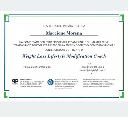 MI sono, perciò, specializzata nel trattamento di obesità e DCA (anoressia, bulimia, BED, etc), seguendo master brevi e corsi di specializzazione AIDAP (Associazione Italiana Disturbi Alimentari e del Peso), con il dott. Riccardo Dalle Grave, attuando protocolli specifici che fanno riferimento alla terapia cognitivo-comportamentale nel trattamento dell'obesità. Per vari anni ho gestito dei gruppi Menopausa, in collaborazione con una psicoterapeuta ed una ginecologa. Nel mio percorso, continuo ad aggiornarmi seguendo corsi ECM, convegni, congressi ed approfondimenti online in ambito nutrizionale e dietetico.