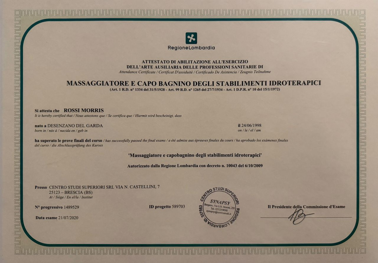 Mi chiamo Morris Rossi e sono un massoterapista qualificato, con anni di esperienza al fianco di persone di ogni età con l’obiettivo di ridurre il dolore, migliorare la postura e favorire il benessere fisico globale.