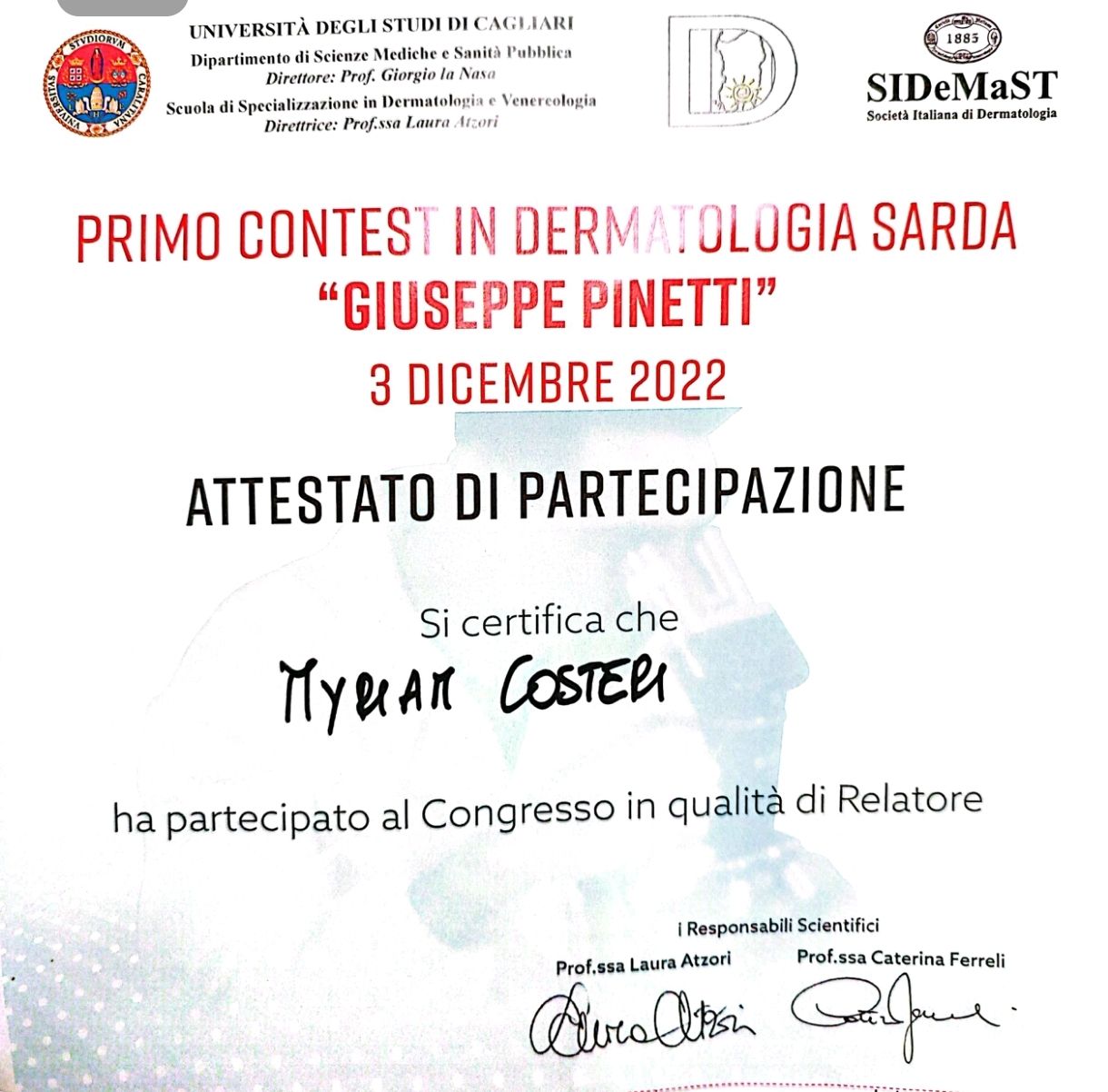 Ho conseguito la formazione specialistica presso l’Università di Cagliari, completando il percorso con una frequenza di 16 mesi presso la Dermatologia dell’IRCCS Policlinico Sant’Orsola-Malpighi di Bologna, centro di riferimento internazionale per la dermatologia.