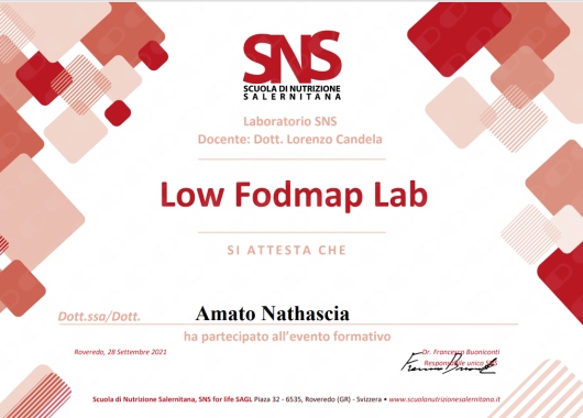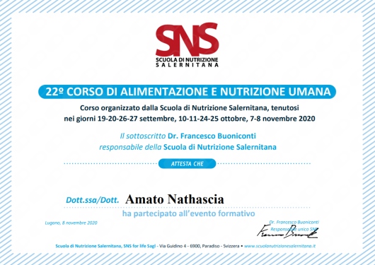 Master di II livello in Nutraceutica e modulazione del microbiota intestinale in oncologia presso il Dipartimento di Scienze Biomediche e Biotecnologiche dell'Università degli studi di Catania.