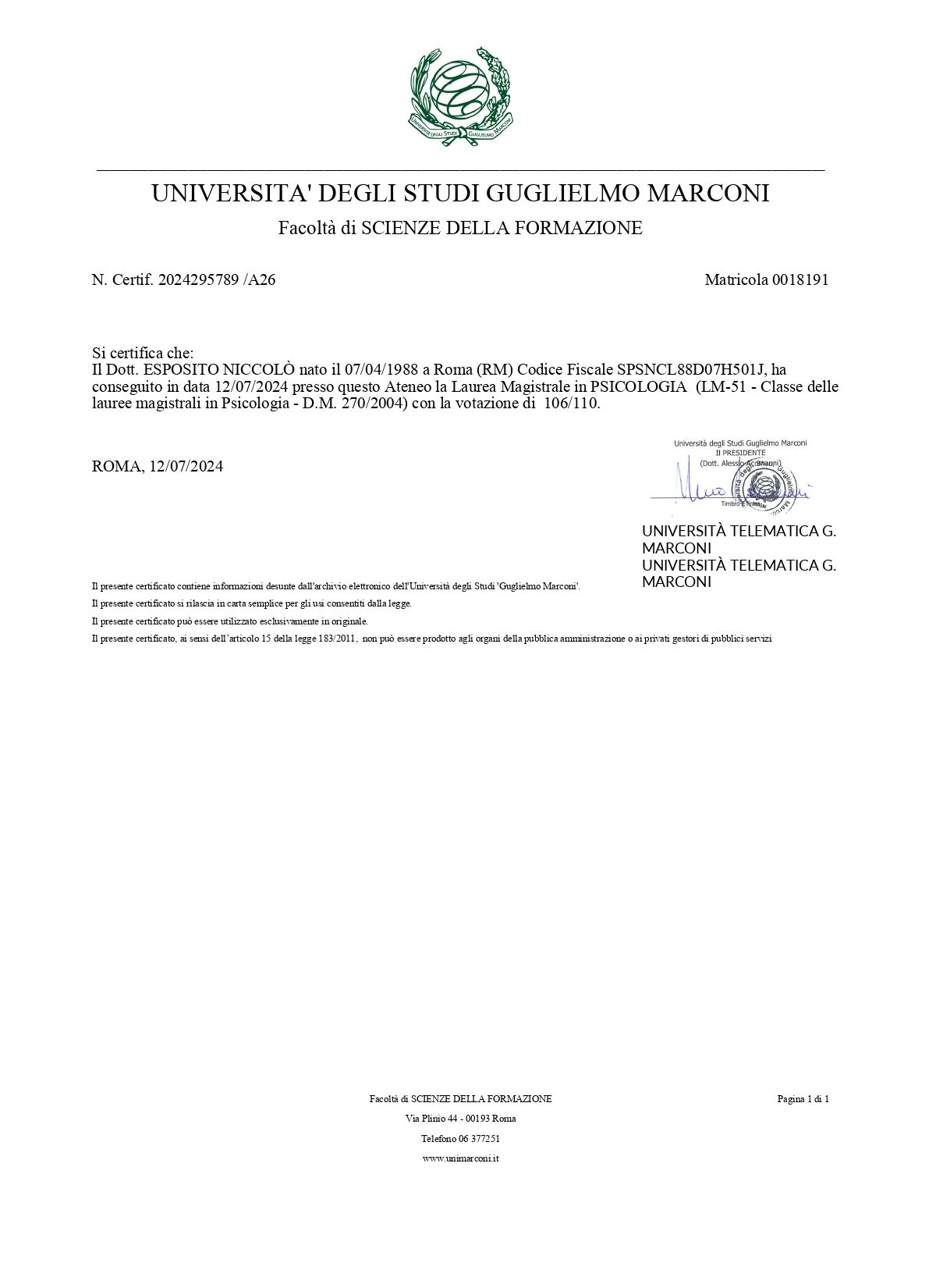 Mi chiamo Niccolò Esposito e lavoro come psicologo clinico.