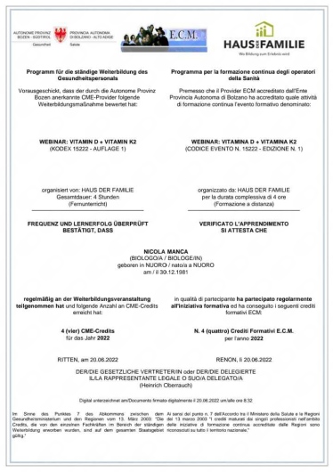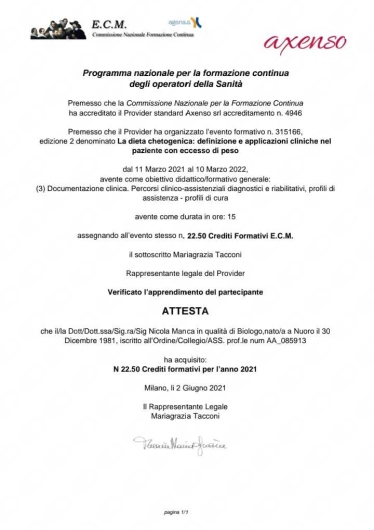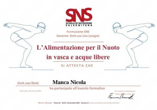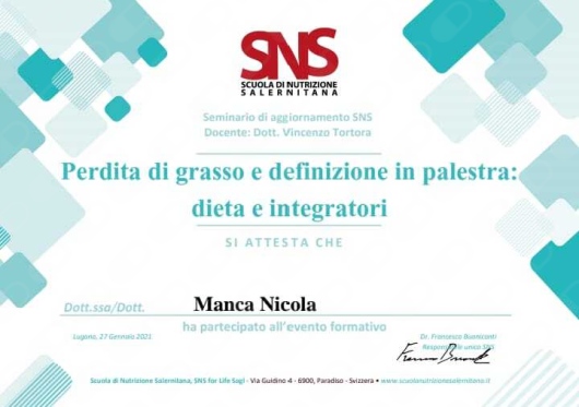 Cordiali saluti, Dott. Nicola Manca, Nutrizionista e Chinesiologo