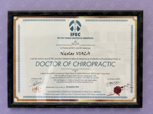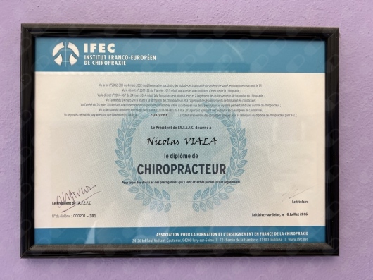 Mi chiamo Nicolas Viala, nato a Nizza e cresciuto a Besançon in Francia, ho studiato la Chiropratica preso l'IFEC, scuola francese di Chiropratica a Parigi e mi sono laureato in 2016.