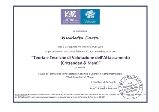 Valida professionista molto attenta, preparata e aggiornata. Oltre a ciò si e’ dimostrata anche una persona molto sensibile e empatica. Nel suo studio vengono progettati percorsi pensati ad hoc per ogni persona e le sue specifiche esigenze. Mi sono trovata davvero molto bene.