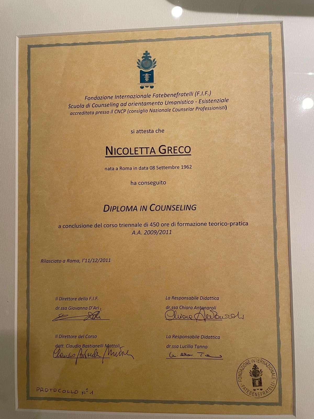 Sono la Dottoressa Nicoletta Greco- Psicologa