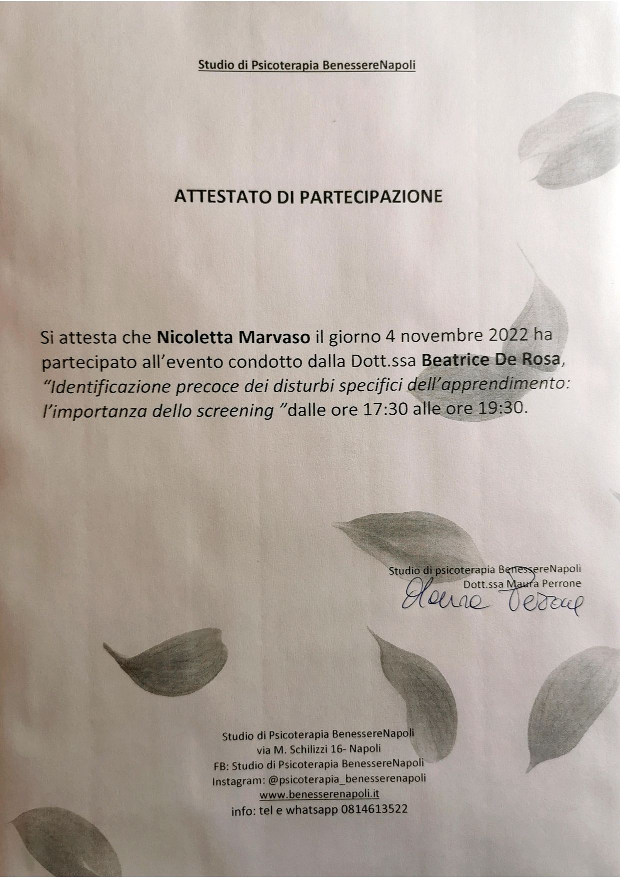 Ho conosciuto Nicoletta per una problematica che ho avuto con il mio bambino. Il nostro è stato un percorso breve ma mi ha aiutata tanto nel capire il percorso da fare…sono contenta di poterle dare una recensione perchè la sua giovane età è sinonimo di entusiasmo e passione per il lavoro. Sono ancora all’inizio per percorso ma non posso che ringraziarla!