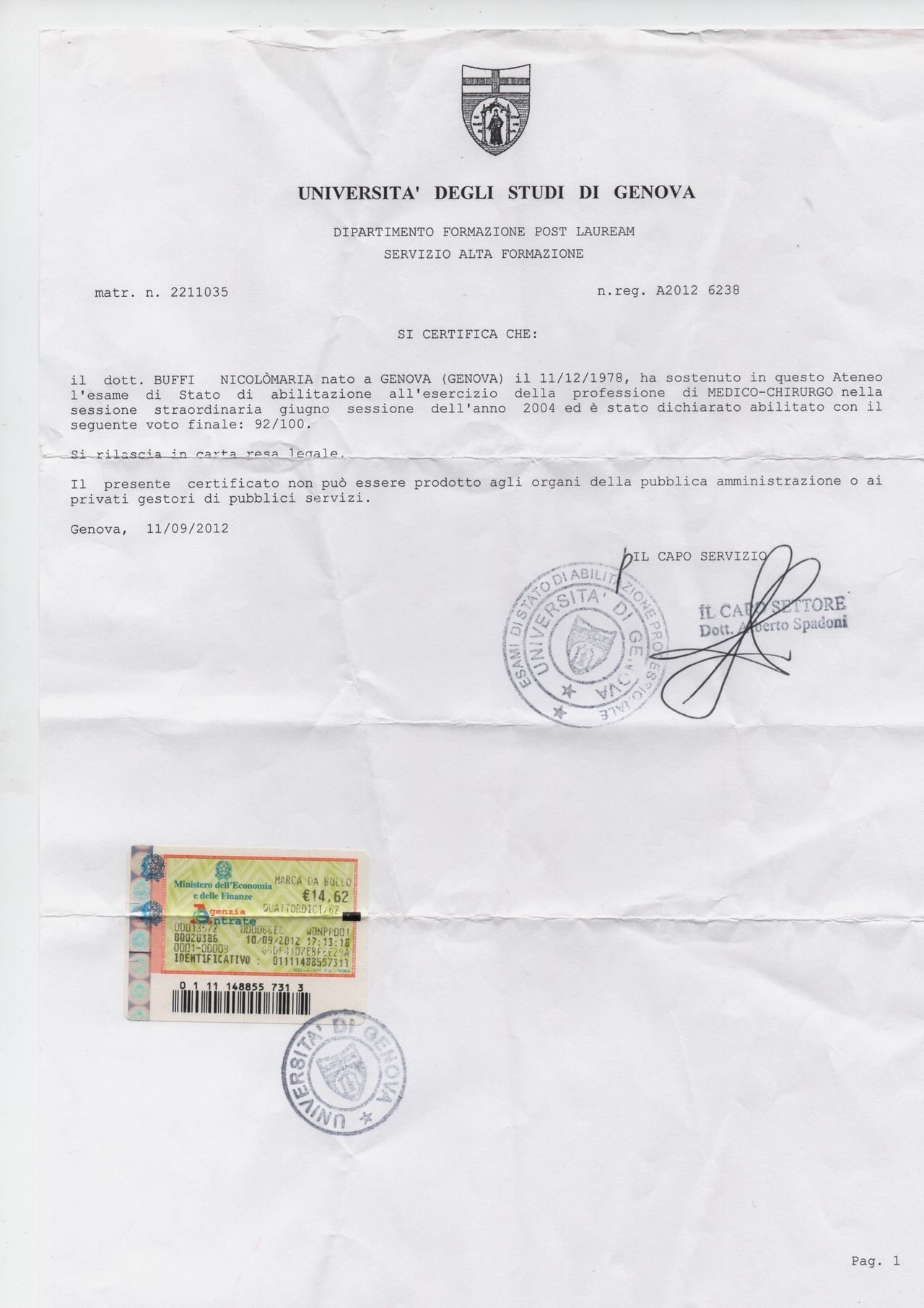Professionalità e competenze al top, ringrazio il Professore e lo staff