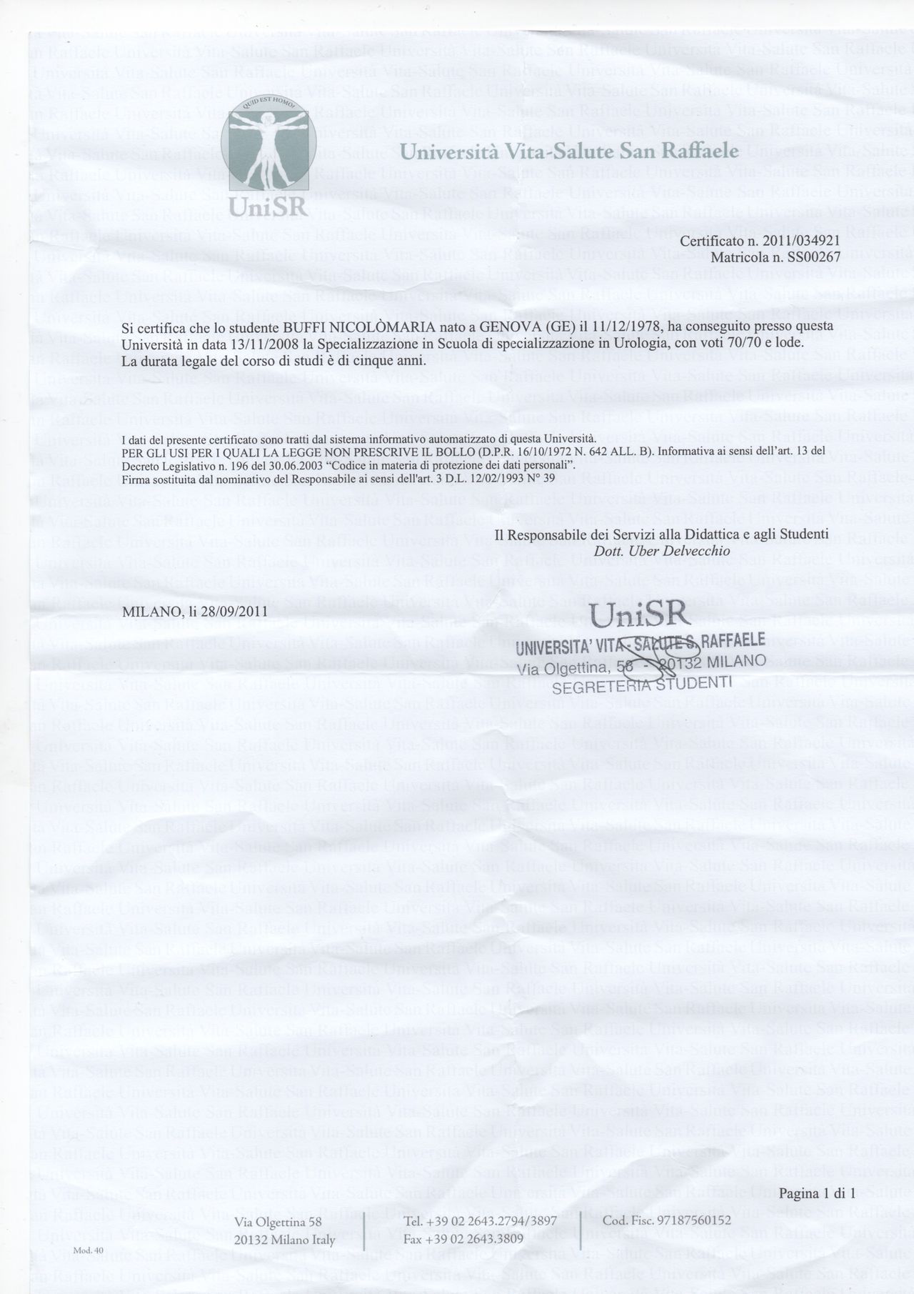 Gentile. Ci siamo sentiti a nostro agio. La spiegazione è stata chiara.• Studio Risorgimento • prima visita urologica •