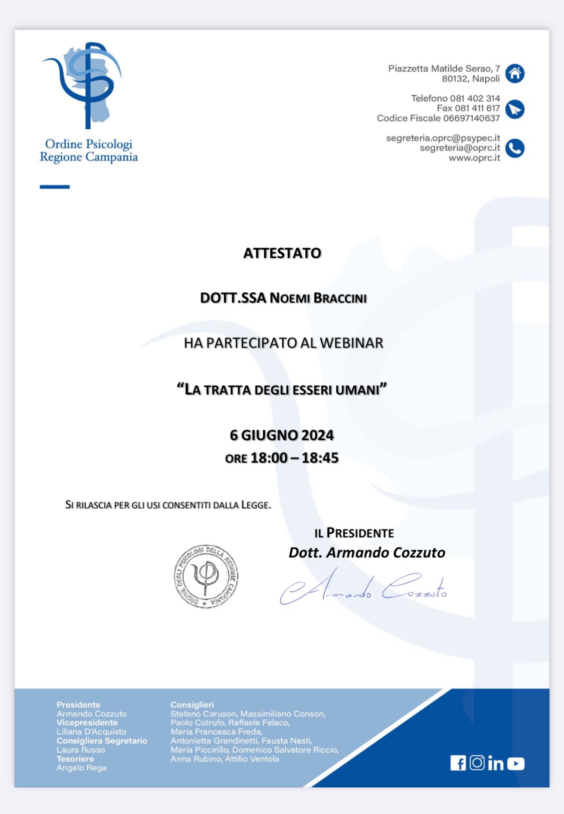 Ho intrapreso un percorso con la dottoressa, una professionista di grande umanità. Si è mostrata subito disponibile, accogliente e soprattutto empatica. Mi ha colpito come mi abbia accompagnata con delicatezza e rispetto nella comprensione dei miei vissuti, senza alcun giudizio. Consiglio vivamente la dottoressa a chiunque sia alla ricerca di un aiuto autentico e umano.