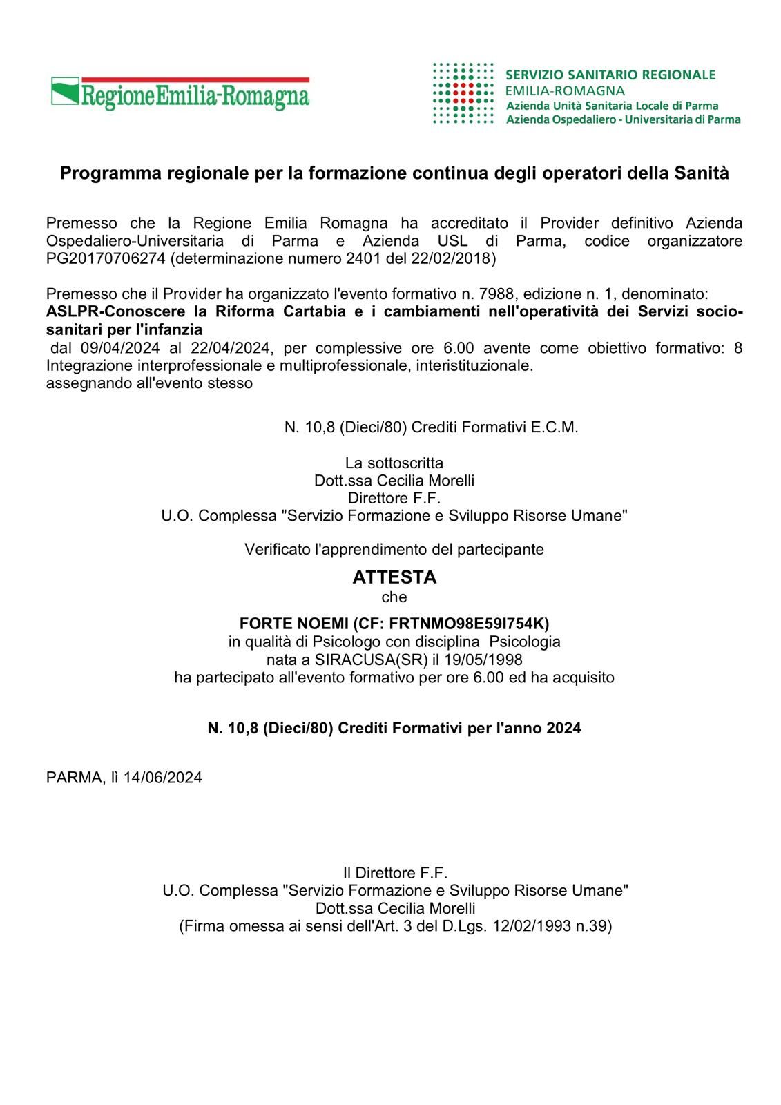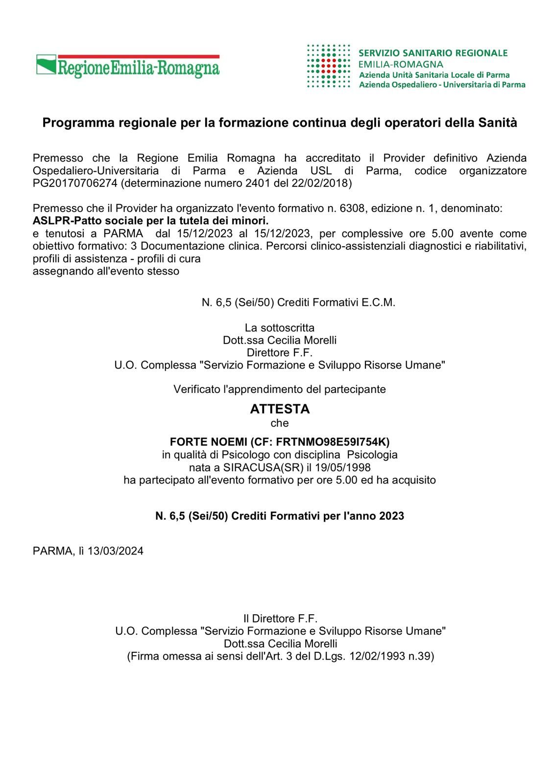 La dottoressa Noemi Forte è una psicologa attenta, preparata e sempre disponibile. Fin da subito ho apprezzato la sua umanità, la capacità quindi di mettermi immediatamente a mio agio, con un ascolto attento ma sempre professionale.