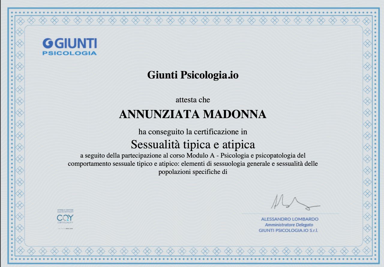 Da un anno e mezzo sono seguito dalla Dott.saa Madonna ed ho raggiunto miglioramenti e consapevolezza dei miei problemi che non immaginavo avrei ottenuto fino a qualche tempo fa. Empatia, schiettezza quando serve, ma accompagnata da delicatezza, percorso ben definito, tecniche comportamentali e mentali efficaci per destrutturare i pensieri "patologici". Continuerò ancora per molto il percorso con la Dott.ssa