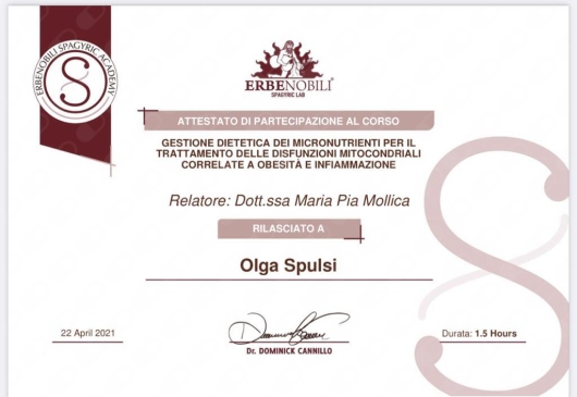 Sono Olga Spulsi, dottoressa in scienze biologiche presso l'università degli studi di Napoli Federico II. Da sempre affascinata dal mondo della nutrizione, ho frequentato un corso di perfezionamento in 'Igiene alimentare, Nutrizione e benessere'. Curiosa di scoprire i suoi benefici ed i collegamenti con il nostro cervello, ho più volte approfondito le mie conoscenze sul Microbiota, il mio lavoro di tesi in Portogallo, infatti, è stato incentrato sullo studio di patologie correlate a disbiosi del microbiota enterico. Da buona sostenitrice e promotrice di uno stile di vita sano, nonchè amante dello sport e della pole dance, sono pronta ad aiutarvi a raggiungere il vostro equilibrio interiore ed il vostro benessere psicofisico!