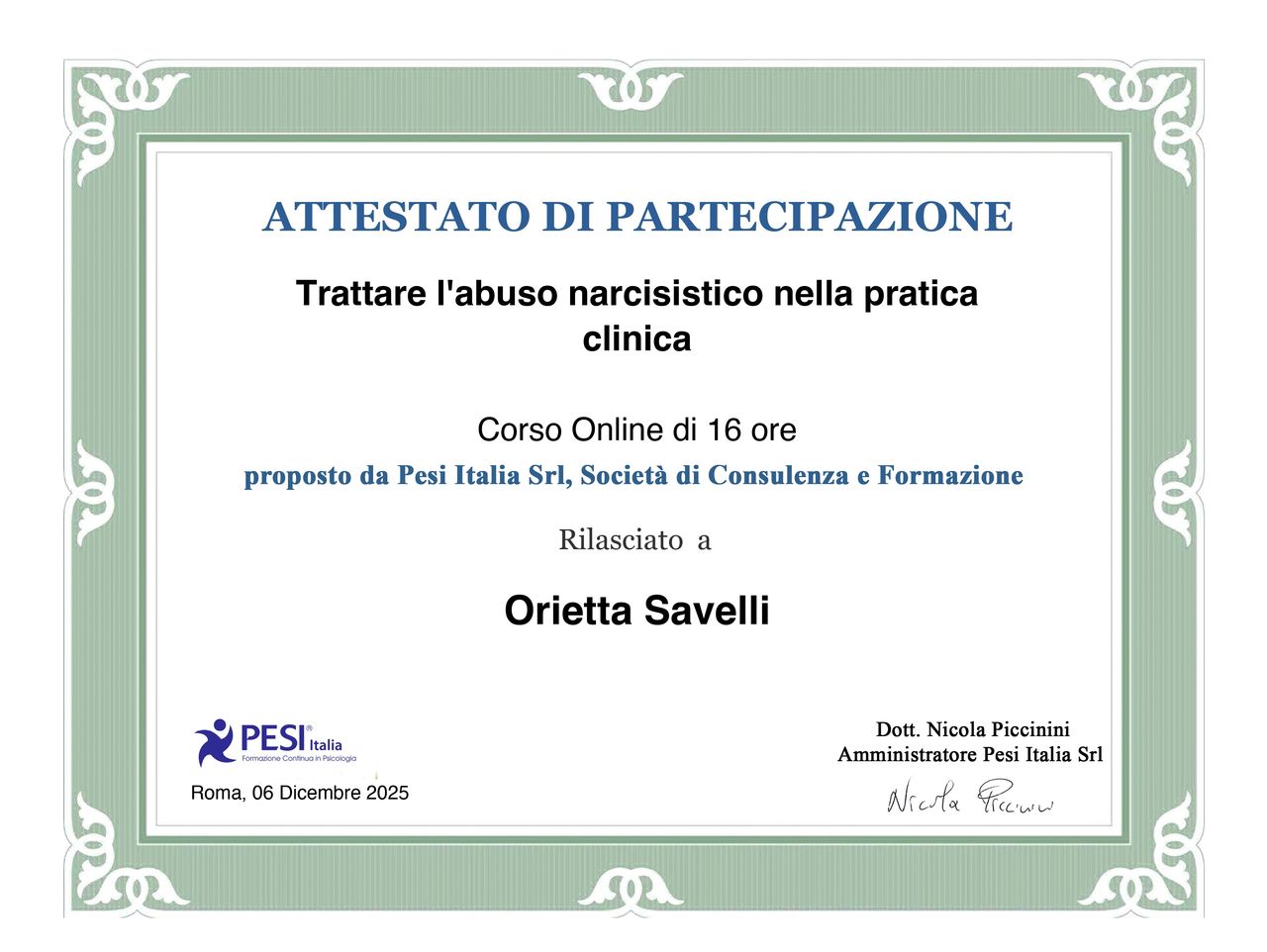 Mi occupo anche del trauma da abuso narcisistico e del malessere che provoca la dipendenza affettiva. Mediante il riconoscimento e la consapevolezza delle proprie dinamiche si può ricostruire la fiducia in se stessi e allontanarsi man mano da quei comportamenti disfunzionali che hanno condotto la persona allo stato di “vittima".