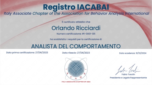 Ho conosciuto il dottor Ricciardi durante il mio iter formativo di formazione per Tecnico del Comportamento. È stato il mio super visore.