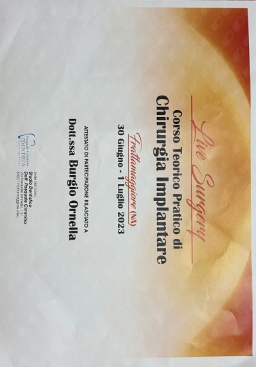 Ho partecipato a numerosi corsi di perfezionamento sull'ortodonzia dell' adulto, endodonzia conservativa e chirurgia maxillo-facciale per acquisire un approccio multidisciplinare sulle problematiche odontoiatriche; in particolare il corso di perfezionamento di Ortodonzia fissa sulla tecnica straight-wire con il Dott. Davide Mirabella ha permesso di specializzarmi sul mondo dei bambini per correggere le discrepanze scheletriche e dentali in ambito pediatrico ed il corso di Protesi fissa con il Dott. Ugo Macca mi ha avviato alla riabilitazione della funzione masticatoria e al trattamento estetico.