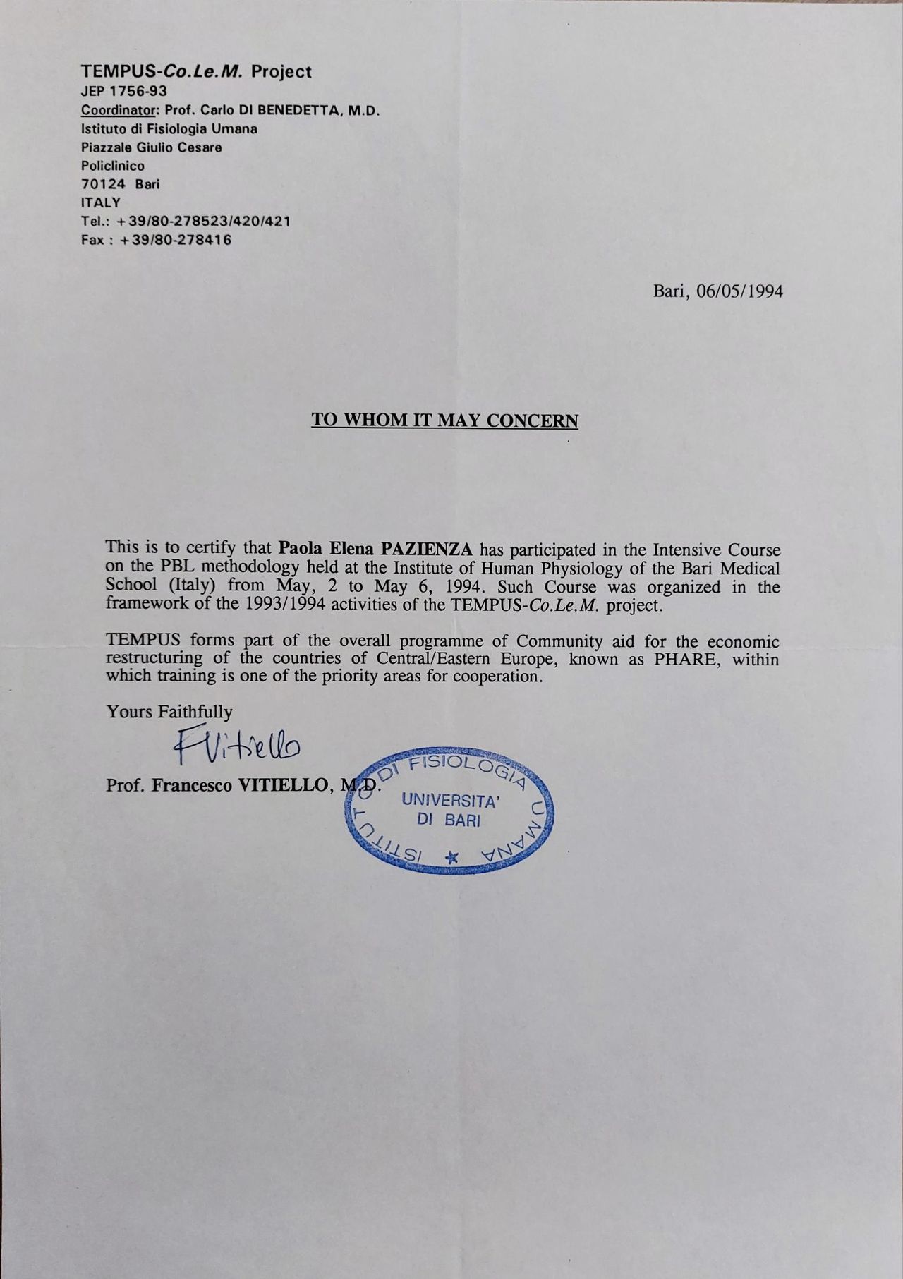 Ho consultato la dottoressa Pazienza varie volte nel corso degli ultimi anni per motivi diversi che il mio medico curante sottovalutava giudicandoli malanni legati all'età. Invece la dottoressa Pazienza, con grande professionalità, ogni volta cercava di inquadrare il nuovo sintomo nel quadro complessivo della mia storia medica. In tal modo riusciva ad identificare il problema, a suggerire la corretta terapia e, nel contempo, a rendermi partecipe della problematica. Ciò ha contribuito a farmi guarire più velocemente ed a calmare le mie apprensioni.