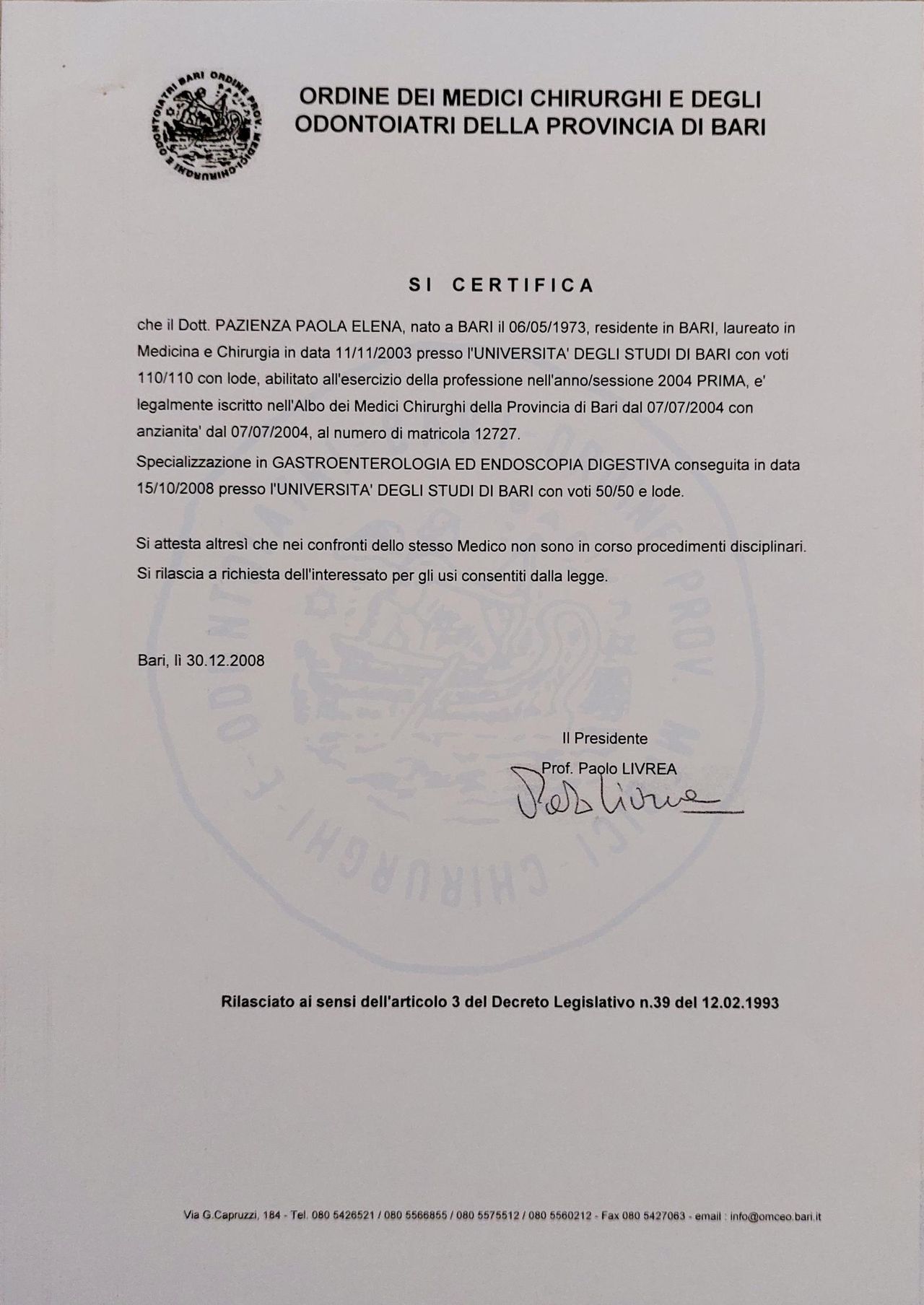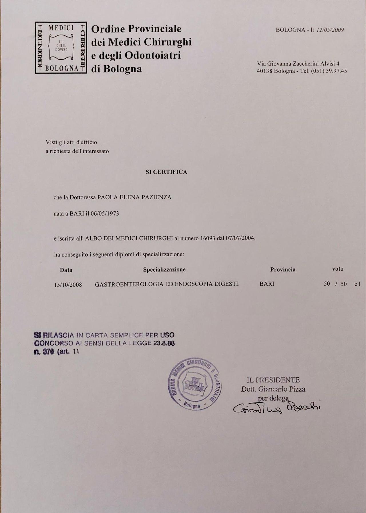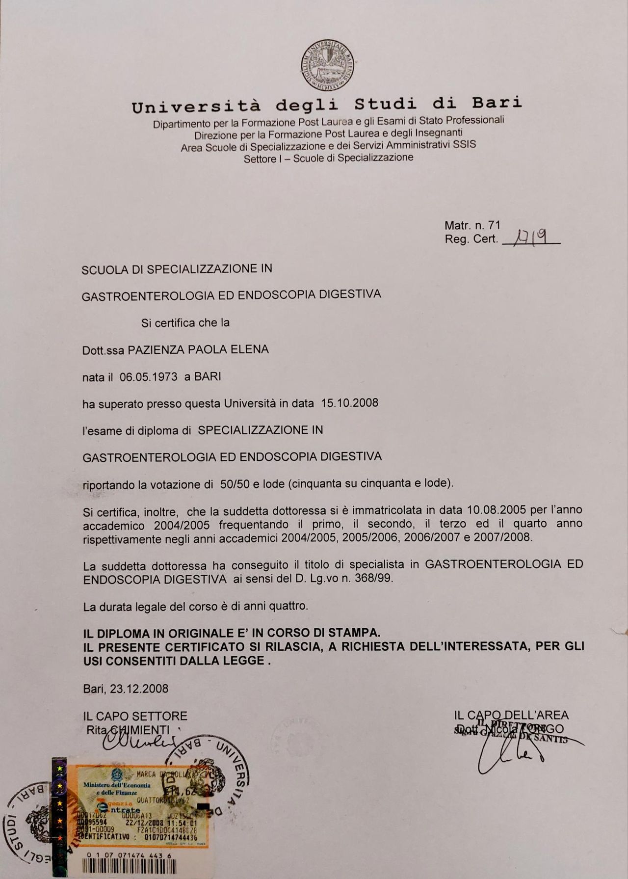 Mi chiamo Paola Elena Pazienza e sono un medico gastroenterologo.