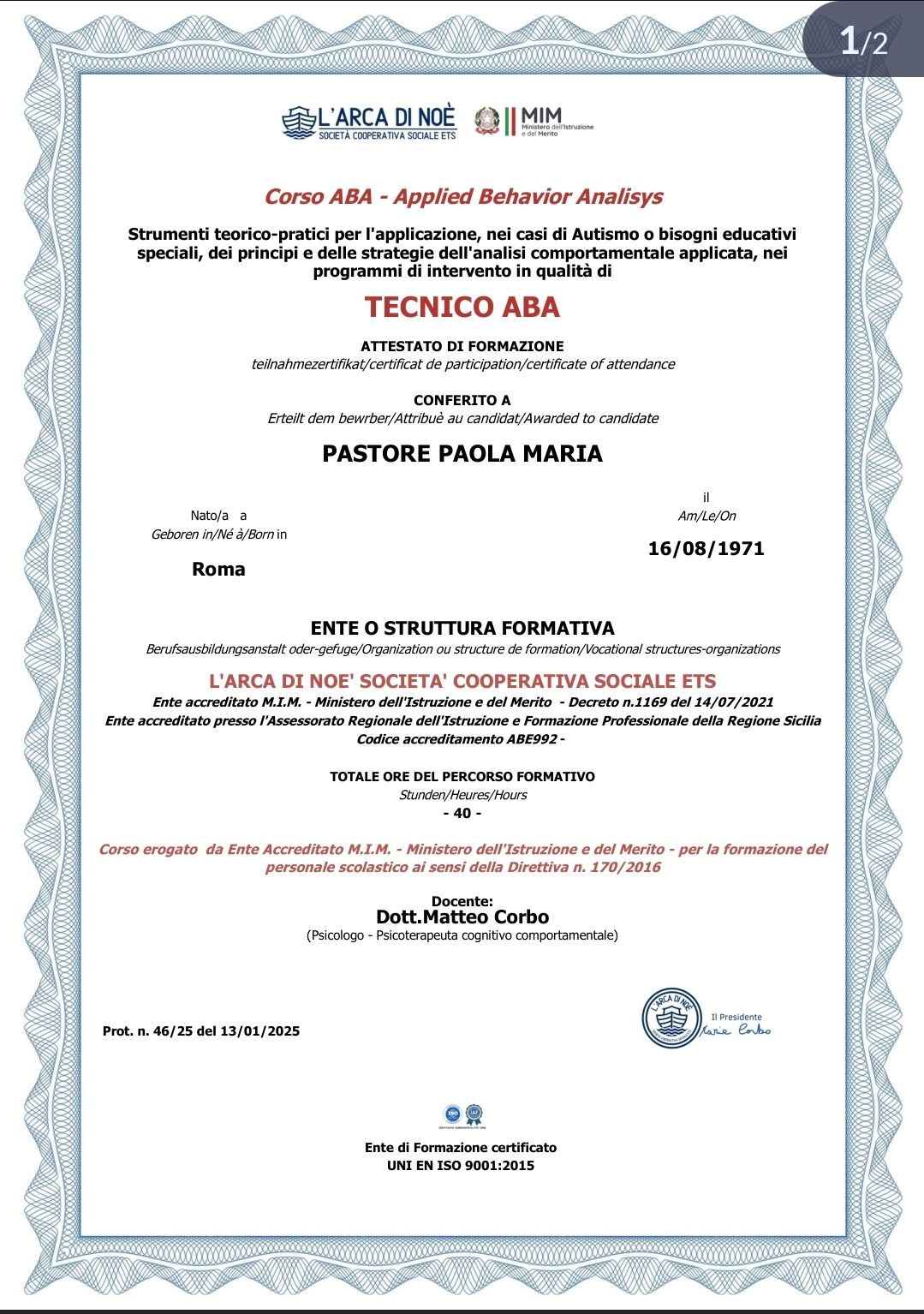 Dott.ssa Paola Maria Pastore