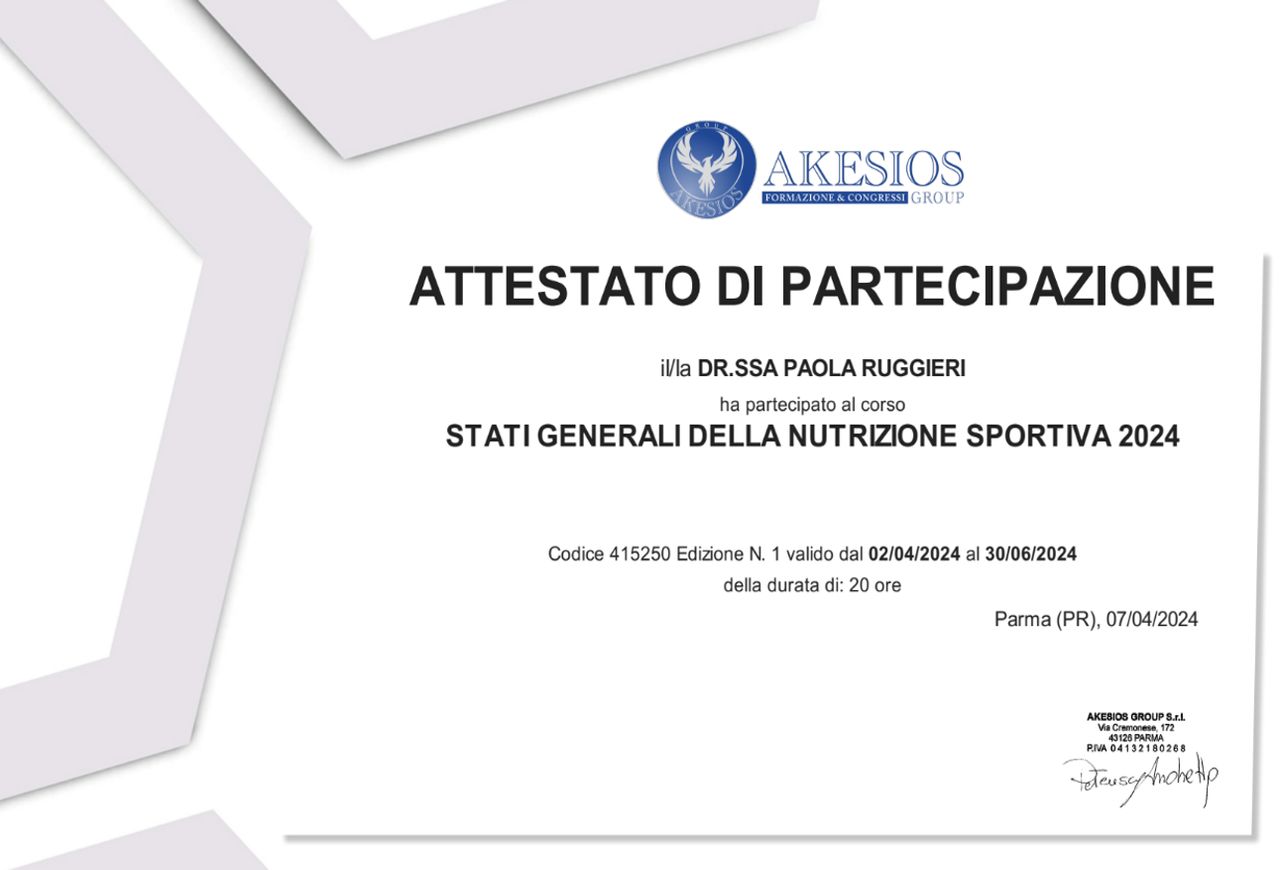 La Dott.ssa Ruggieri, è estremamente competente nel proprio lavoro ed ha sempre dimostrato una grande capacità di ascolto. I suoi piani nutrizionali si sono rilevati adatti alle mie esigenze. Fortemente consigliata.