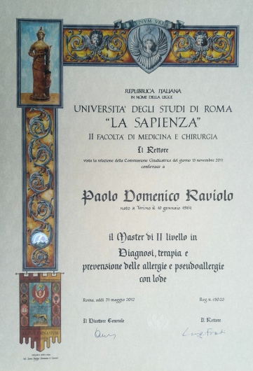 Dal 1989 svolgo la professione di medico ospedaliero presso reparti di Medicina interna e servizi di Allergologia; dal 2009 sono il referente per la branca di Allergologia dell'ASL TO3.