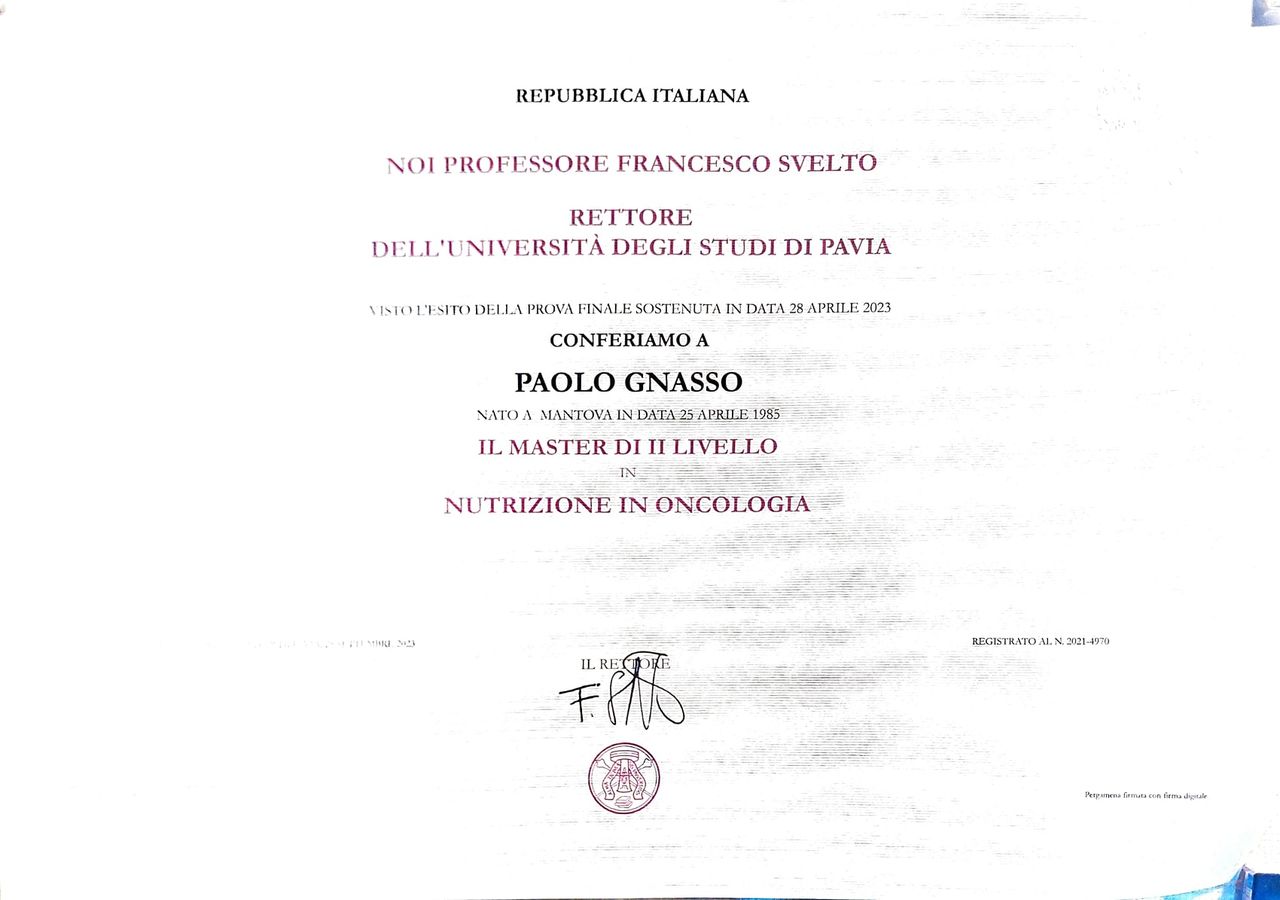 Sono laureato in Farmacia ed in Biologia Molecolare, Medica e della Nutrizione, nel 2023 mi sono specializzato in Nutrizione in Oncologia presso il Dipartimento di Medicina interna e Terapia Medica di Pavia. Lavoro a Mantova (presso il Centro Medico Gaudia) e Modena (presso Studio privato). Seguo la Nutrizione del Calciatore, dei Fighters e sono Nutrizionista dei Triatleti della Canottieri Mincio di Mantova. Seguo la Nutrizione post- chirurgia bariatrica presso la Desenzano Medical - Amalfi Clinic a Desenzano e a Varese.