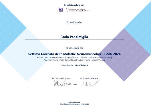 Io ho una patologia neuromuscolare degenerativa ,e il dott.Pandimiglio ha studiato gli esercizi da farmi fare volta per volta in base alle mie criticità.