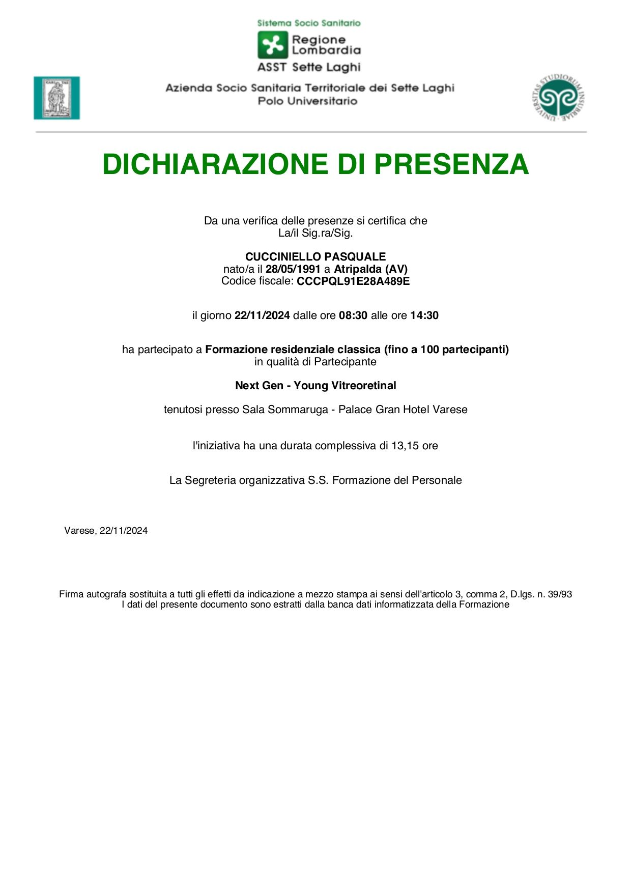 eccellente sia dal punto di vista formativo che umano, mi sono sentito seguito durante tutto il mio percorso di cura