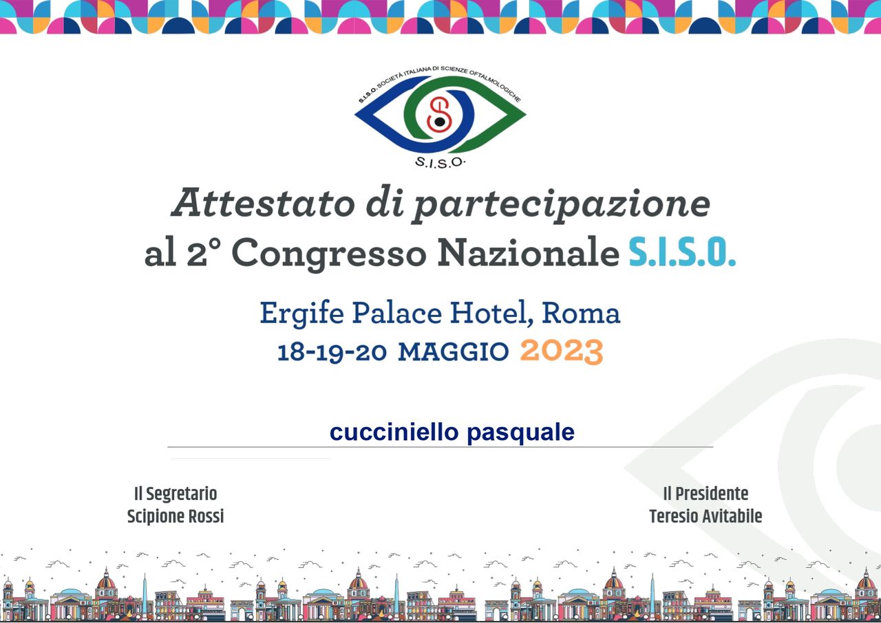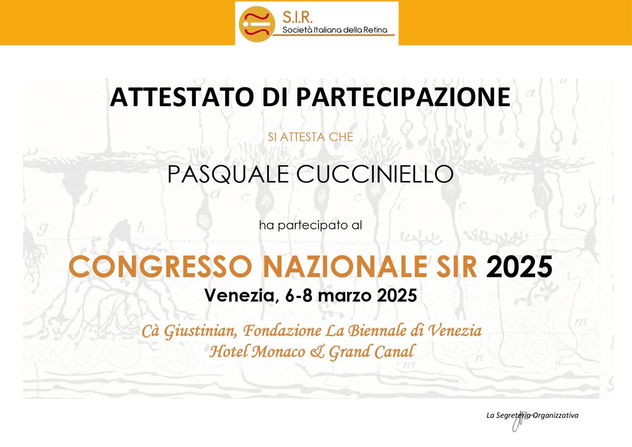 In parallelo all’attività clinico-chirurgica, sono impegnato nella ricerca scientifica in qualità di Dottorando presso l’Università degli Studi del Molise (UniMol), con l’obiettivo di approfondire e sviluppare nuove prospettive nell’ambito delle patologie oculari.