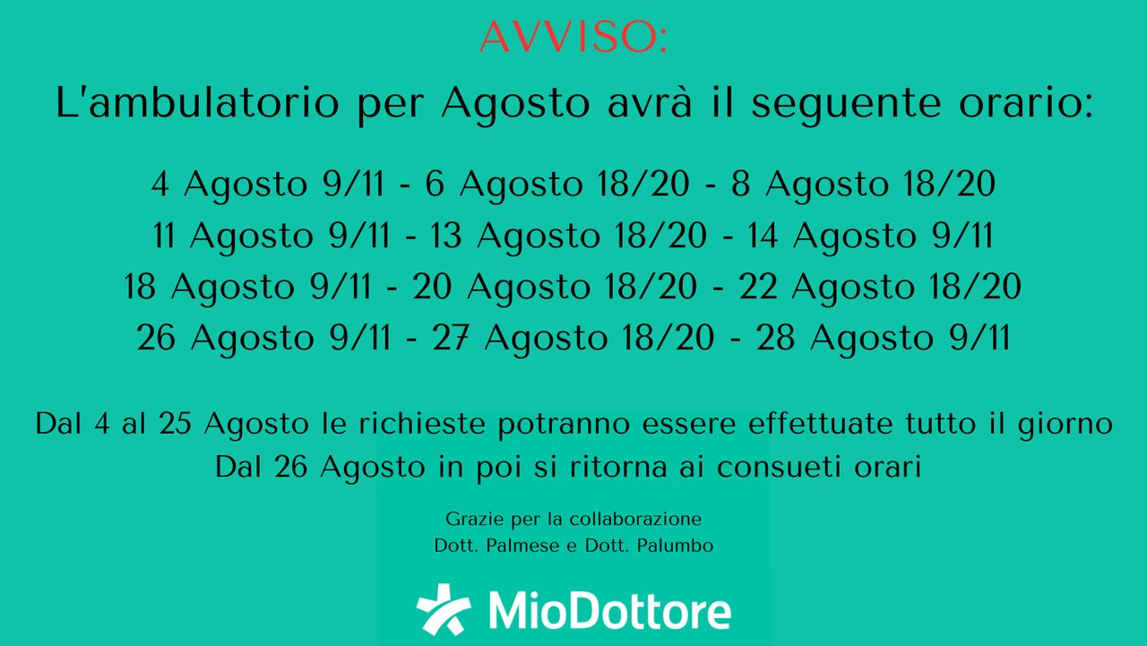 Mercoledì: !4.00-16.00 (solo per appuntamento)