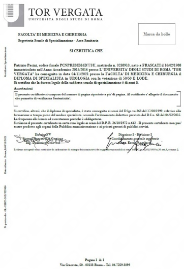 - Policlinico Tor Vergata (chirurgia laparoscopica, chirurgia endoscopica della bassa e dell'alta via escretrice, visite ambulatoriali, ecografie, cistoscopie, biopsie prostatiche)