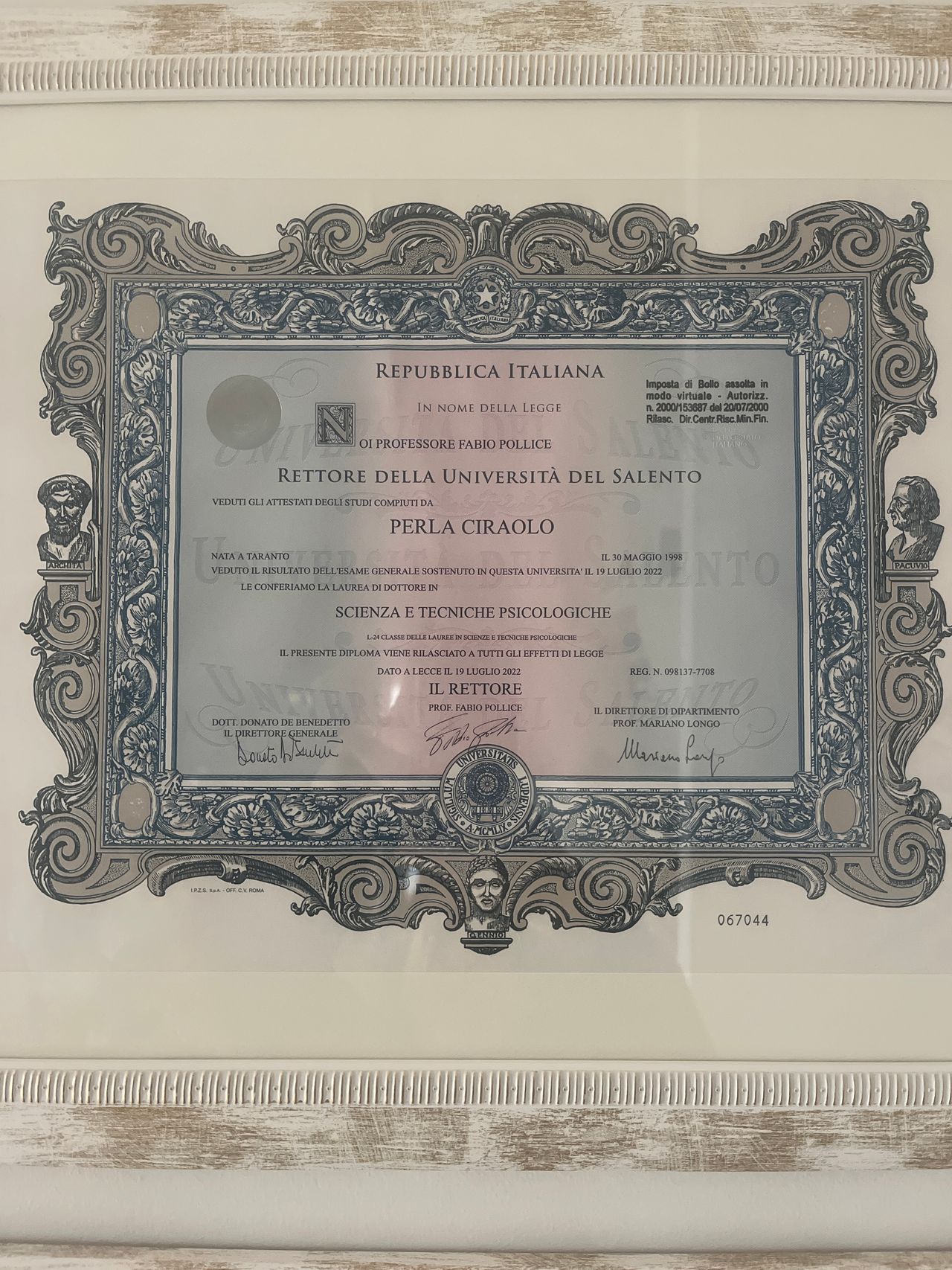 Sono una Psicologa, iscritta all’Albo degli Psicologi, con formazione in psicologia dell’intervento nei contesti relazionali e sociali.