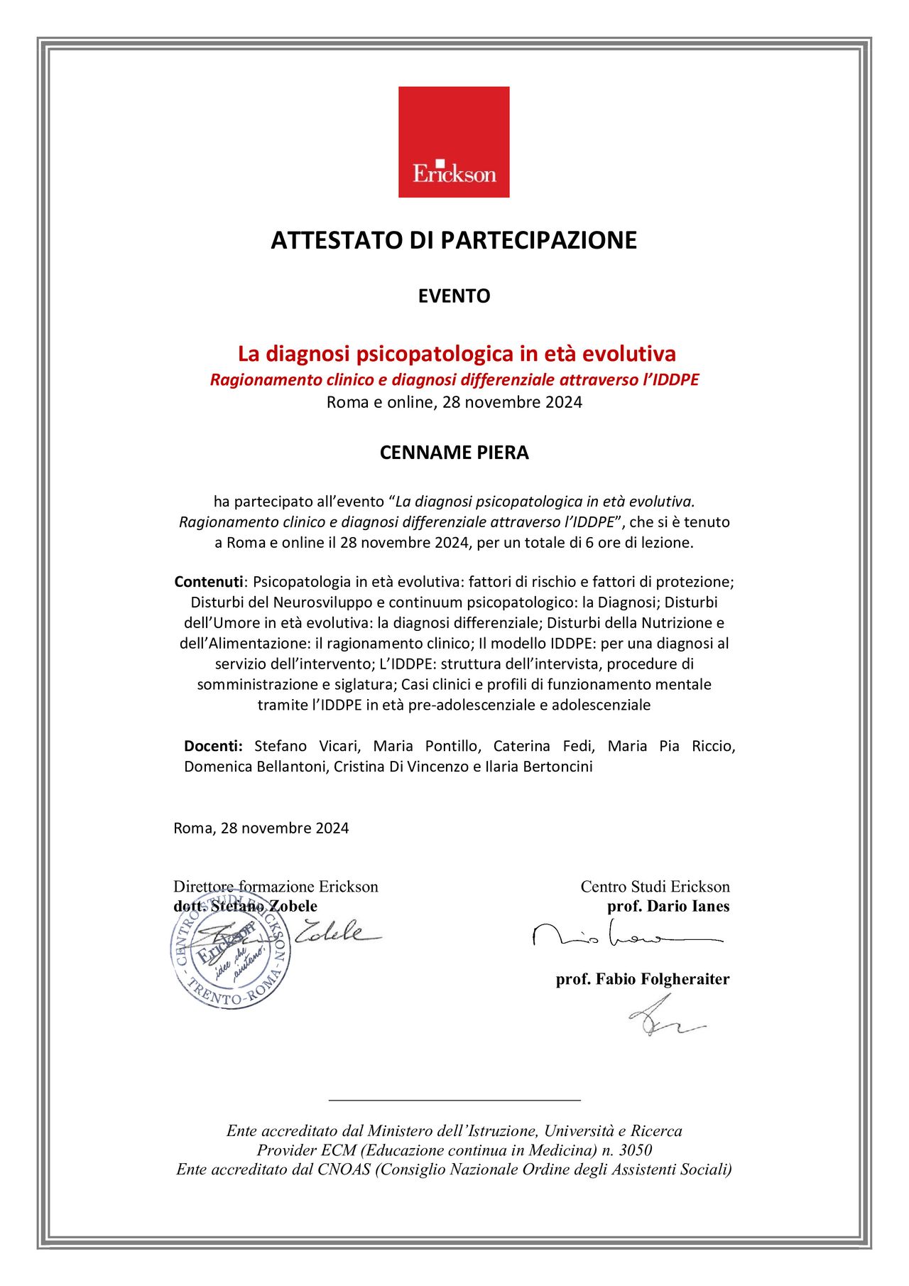 Ho partecipato al Convegno "Psicopatologia in adolescenza" in particolare la valutazione psicodiagnostica in adolescenza e la rilevanza del Ragionamento Clinico