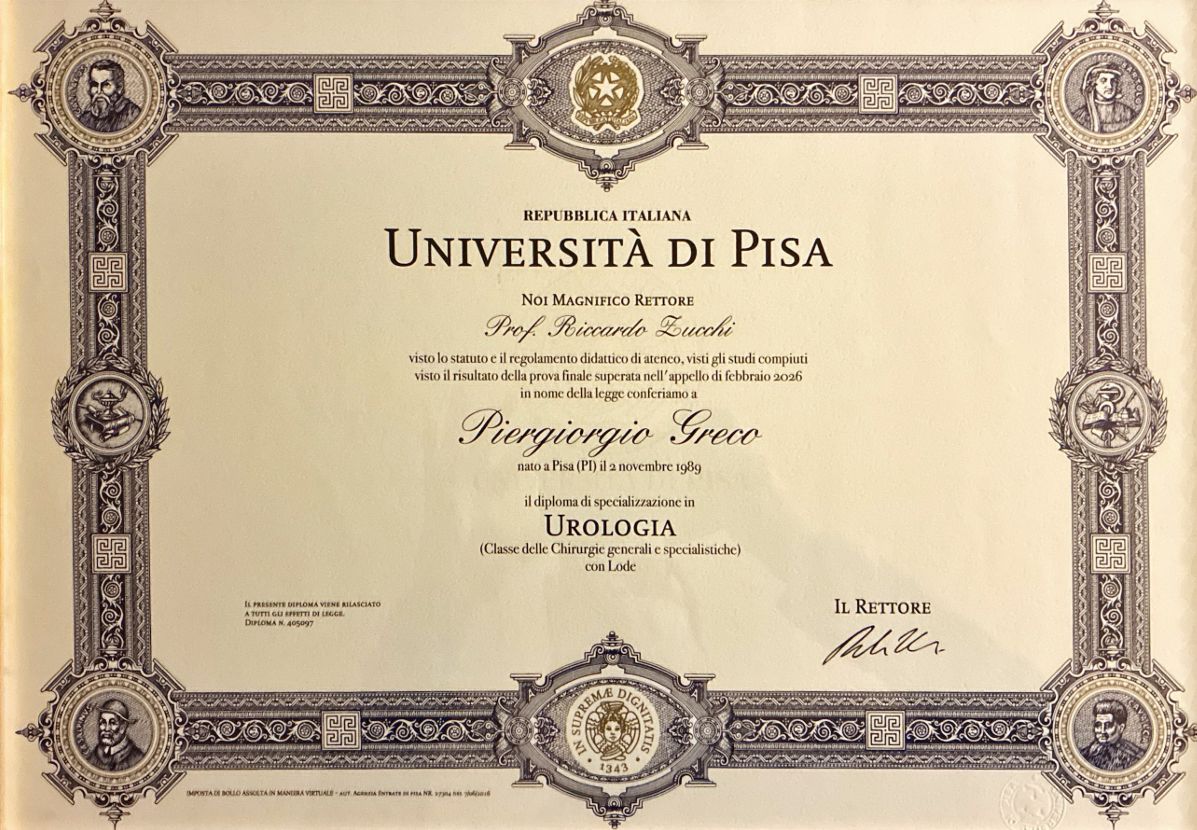 Sono specialista in Urologia e Andrologia. Laureato in Medicina e Chirurgia all'Università di Pisa. Formazione Specifica in Medicina Generale. Specializzato in Urologia all'Università di Pisa con il massimo dei voti. Formazione chirurgica avanzata presso il Centro Urologico Europeo (Modena, Parma, Suzzara).