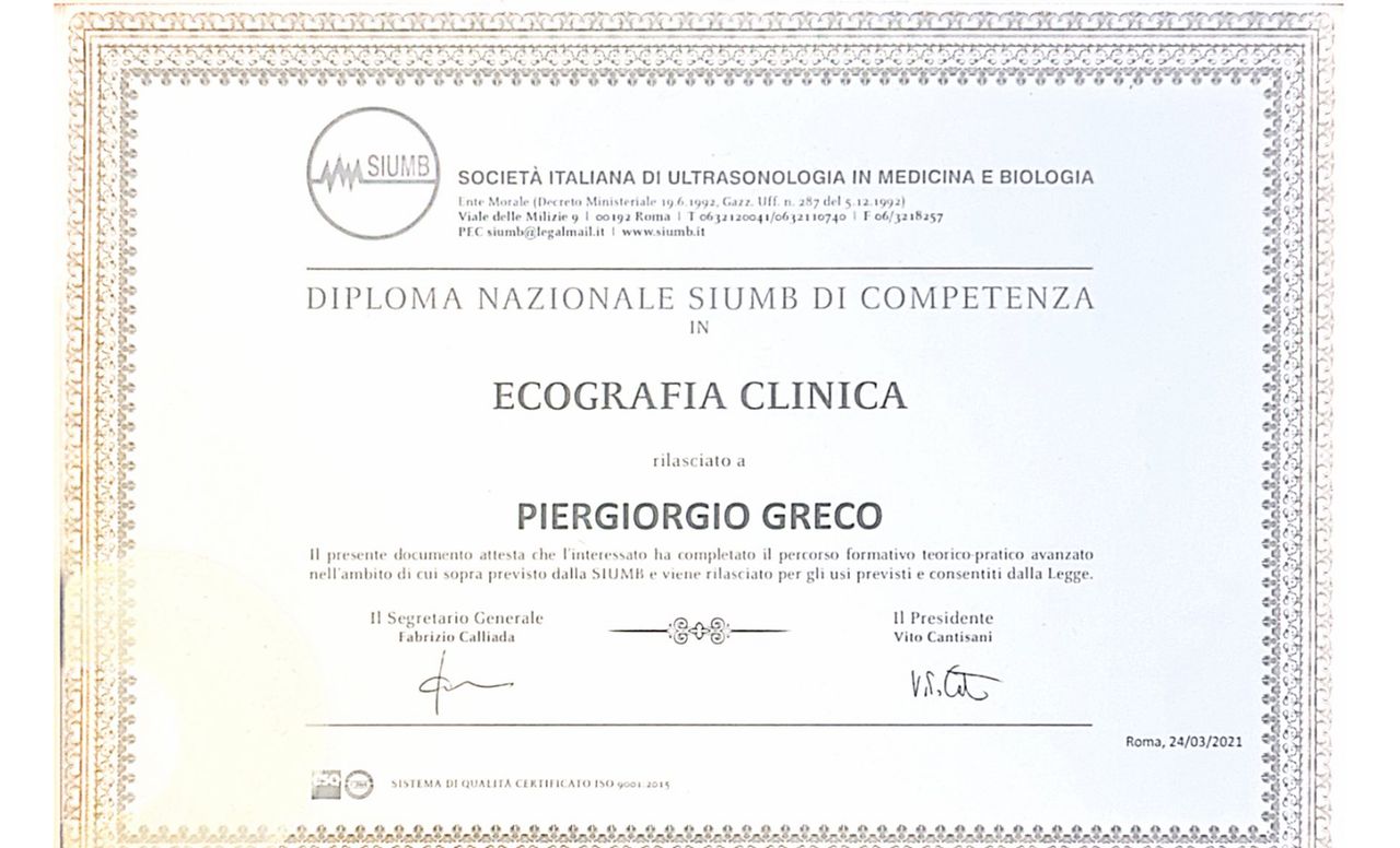 Ho conseguito il Master Universitario di II Livello in Chirurgia Andrologica e Ricostruttiva e il Diploma Nazionale SIUMB in Ecografia Clinica, integrando l’attività chirurgica con una solida competenza ecografica diagnostica.