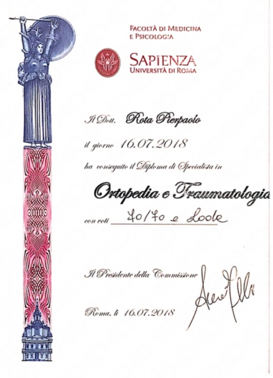 Attualmente svolgo l'attivitá di Chirurgo Ortopedico presso l’Ospedale San Pietro Fatebenefratelli di Roma.