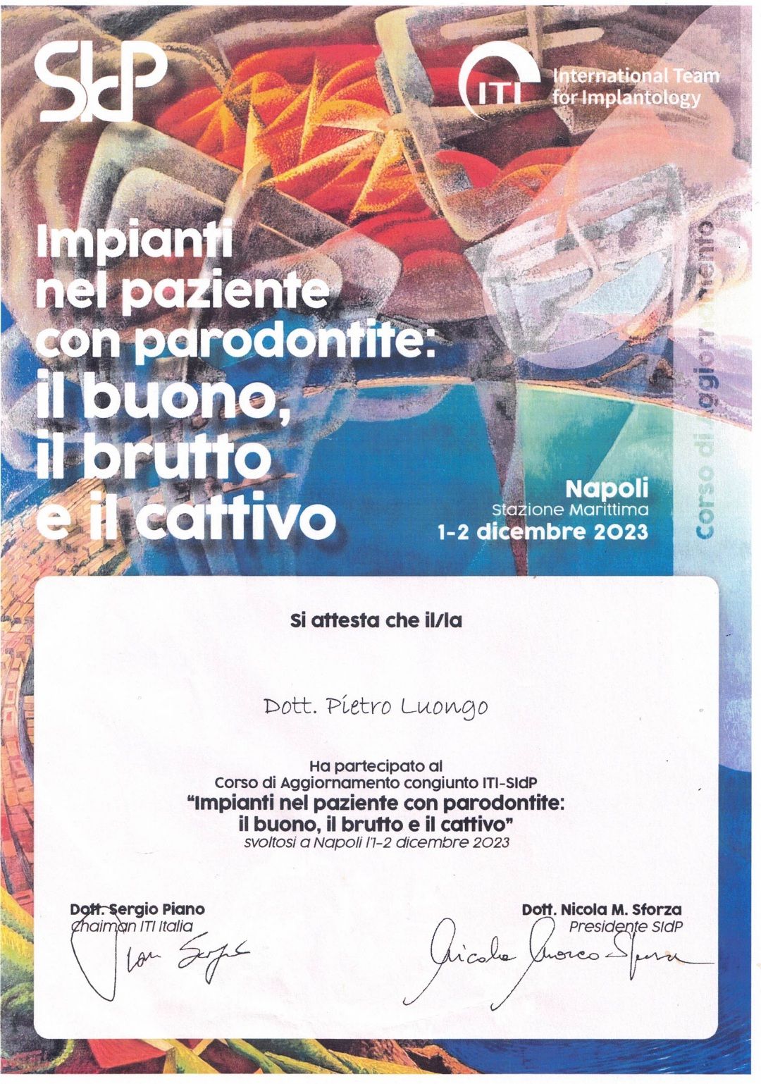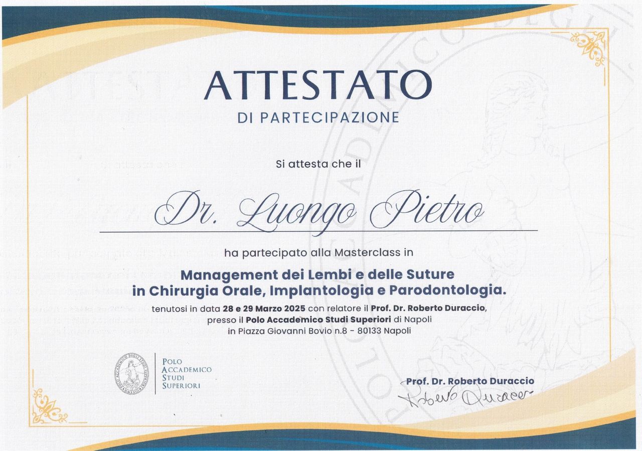 Sono Pietro Luongo, odontoiatra, e svolgo la mia attività professionale a Napoli presso lo studio odontoiatrico di famiglia, attivo da oltre trent’anni.